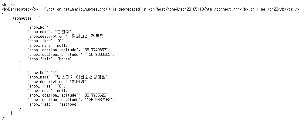 1. 데이터베이스의 내용을 PHP JSON 형식으로 받아오는 코드를 작성